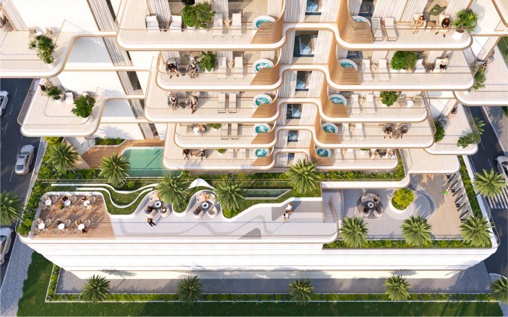 مبنى متوسط الارتفاع، يضم شقق عائلية واسعة، يتميز بإطلالة مباشرة على نهر الفرات مع مساحات خضراء محيطة به.